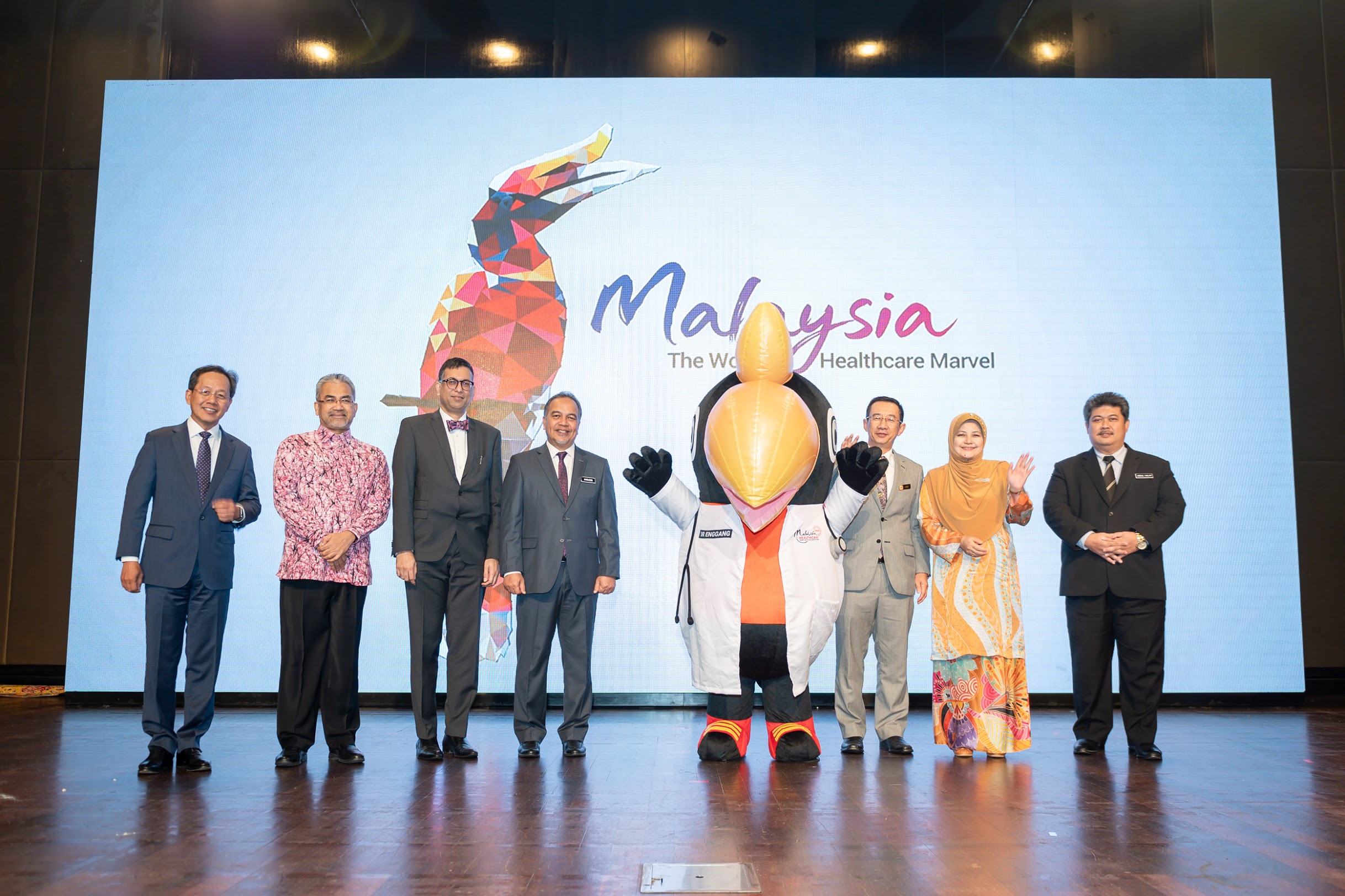 发布会上还发布了MyHT2020的吉祥物。一只名为“迎光医师”,身着白袍的犀鸟露脸发动典礼。会议方介绍,“迎光医师”代表着马来西亚人的热情好客,是马来西亚医疗旅行端到端医疗旅程体会的重要元素。此外,MHTC与马来西亚航空在发动典礼期间签署了体谅备忘录,旨在加强马来西亚医疗旅业的服务。